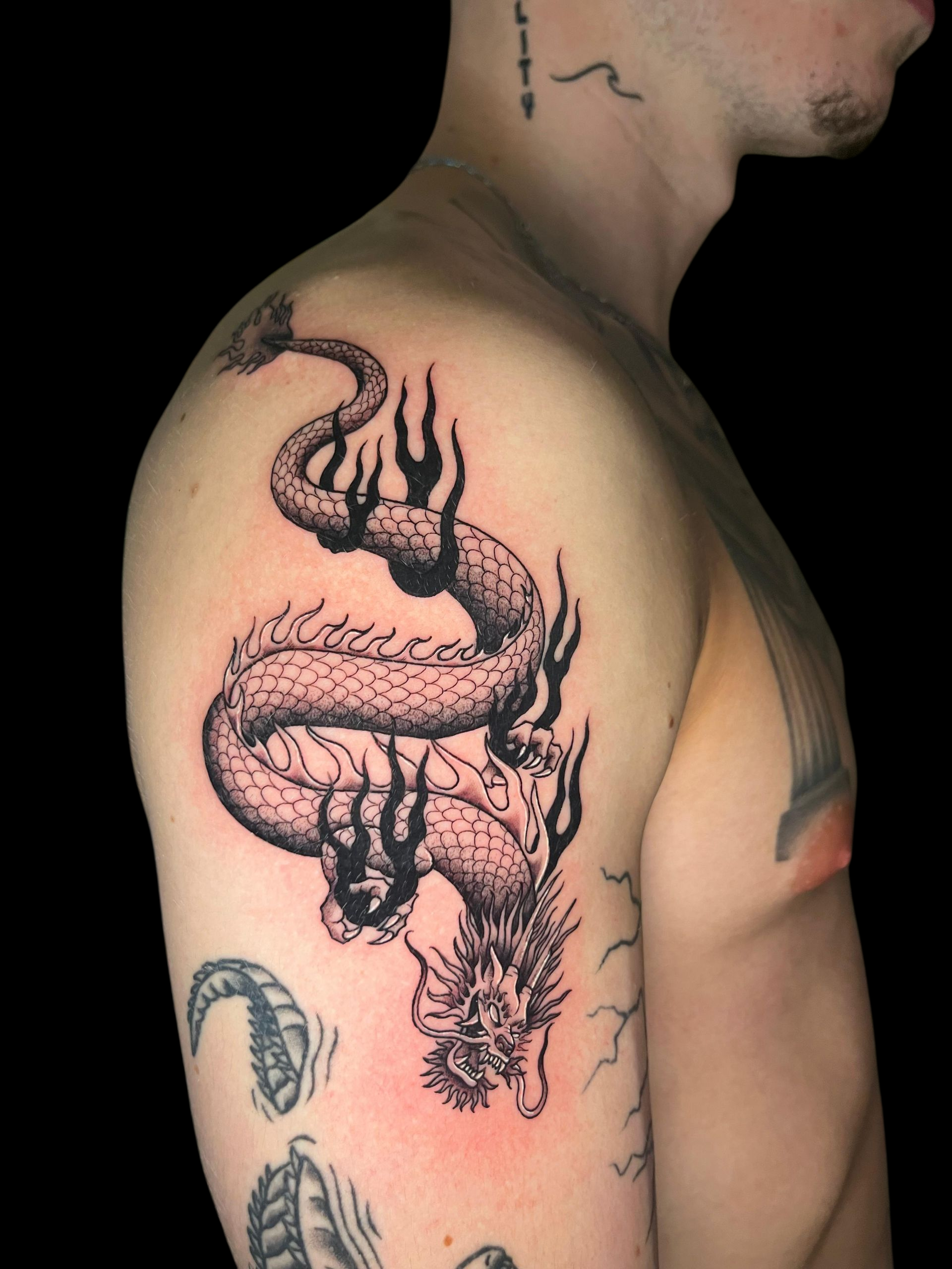 Mijn naam is Dyan, tatoeëerder met meer dan 15 jaar ervaring. Ik heb altijd al op jonge leeftijd getekend en mijn fascinatie voor tatoeages begon al op jonge leeftijd. Mijn eerste tatoeage liet ik in het buitenland zetten toen ik 13 was.In 2009 kreeg ik de kans om mijn passie te ontwikkelen doordat ik in de leer kon gaan. Helaas was dit van korte duur, maar het weerhield me er niet van om door te leren. Hierdoor heb ik het meeste zelf geleerd en jaren later heb ik in verschillende shops gewerkt en mezelf ontwikkeld tot de artiest van nu.Ik doe graag neo-traditioneel, traditioneel. Fine line, lettering en Polynesisch. Ik omschrijf mezelf ook als een allround tatoeëerder. Elk ontwerp dat ik maak is uniek en ontworpen voor de klant. Ik wil mijn klanten meer bieden dan alleen een tatoeage. Mijn doel is om elke klant een mooi, uniek stuk en een prettige ervaring te bieden.